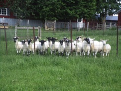 The ewes and rams are put onto good pasture for the first two weeks of the month and then separated into breeding groups in late October/early November. (lambing will be scheduled to start about March 21). The replacement lambs are not bred their first year and are kept separately. Any remaining market lambs are sent to the locker