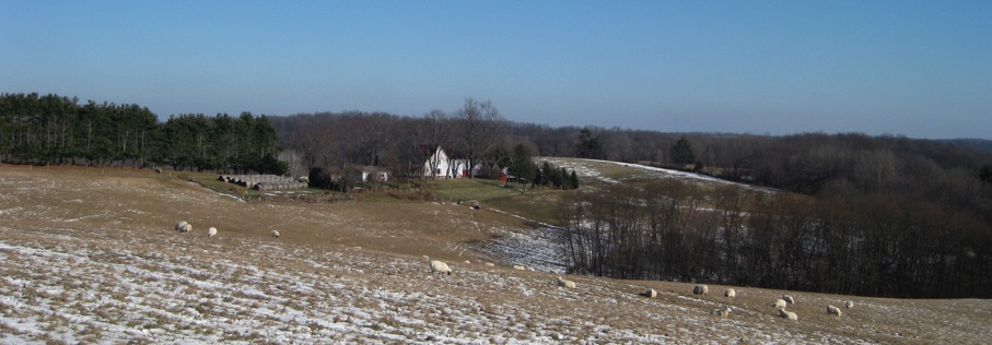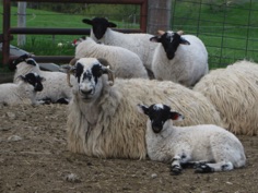 We currently raise purebred registered Scottish Blackface and registered North Country Cheviot sheep, plus crossbred lambs for market sired by a North Country Cheviot ram. These breeds are hardy hill sheep breeds and do not require or desire a lot of intensive management -a helping hand and diligent shepherding is the management style that we have developed. We could not efficiently manage these sheep without the assistance of well trained border collie herding dogs.