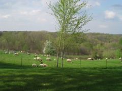 The pasture should be starting to grow this month and the gates are opened for the sheep to browse. Creep rations are continued for the lambs but we find they prefer the grass and by the end of the month the barn is closed and the sheep are out on pasture full time. We have the sheep sheared about the middle of May or early June, before the days start to get very hot. The feet of the rams are trimmed at shearing, because we have extra help and they are also wormed at this time. The ewes feet are trimmed on an as-needed basis.